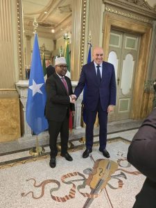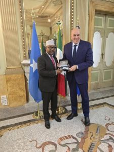 RADIO MUQDISHO(ROME):-Wasiirka Gaashaandhigga XFS, Mudane Axmed Macallin Fiqi, oo booqasho rasmi ah ku jooga Dalka Talyaaniga, ayaa magaalada Rome kula kulmay dhiggiisa Talyaaniga, Mudane Guido Crosetto.