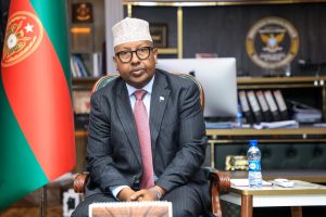 RADIO MUQDISHO:-Wasiirka Gaashaandhigga ee Xukuumadda Federaalka Soomaaliya, Axmed Macallin Fiqi, ayaa maanta xafiiskiisa ku qaabilay Safiir-ku-xigeenka Safaaradda Boqortooyada Ingiriiska u fadhiya Soomaaliya, ahna Ku-simaha Safiirka, Danjire, Sam Thomas.