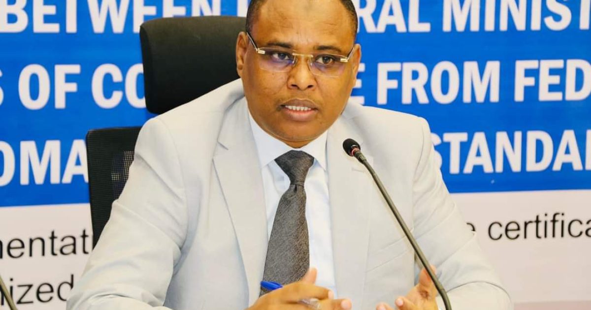 Wasiirka Ganacsiga iyo Warshadaha Xukuumadda Federaalka Soomaaliya Hon. Jibril Abdirashid Haji , ayaa maanta furay shirkii ugu horreeyey ee ay wada-yeeshaan Wasaaradda Ganacsiga iyo Warshadaha heer Federaal, Wasaaradaha Ganacsiga iyo Warshadaha heer Dawlad Goballeed iyo hay’adda Tayo-dhowrka Soomaaliyeed kaas oo loogga hadlaayey hir-gelinta hal-beeg midaysan iyo shahaado dunida laga aqoonsan yahay si kor looggu qaado ganacsiga aynu u dhoofinno suuqyada ganacsi ee Caalamka.
