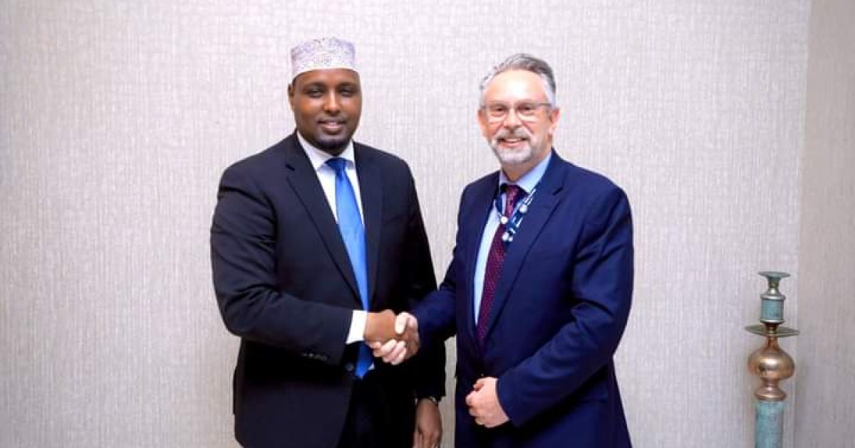 Wasiirka Qorsheynta, Maalgashiga iyo Horumarinta Dhaqaalaha Xukuumadda Federaalka Soomaaliya, Mudane Maxamuud Cabdiraxmaan Sheekh Faarax (Beenebeene) ayaa maanta kulan wax ku ool ah la yeeshay, Mudane Christopher Pycroft, Agaasimaha Horumarinta ee Safaaradda Ingiriiska ee Soomaaliya.