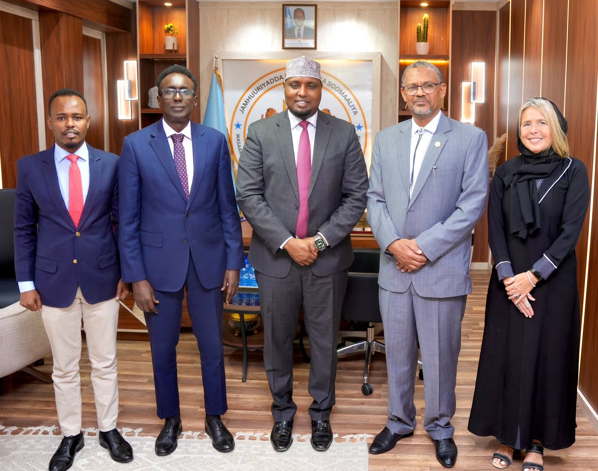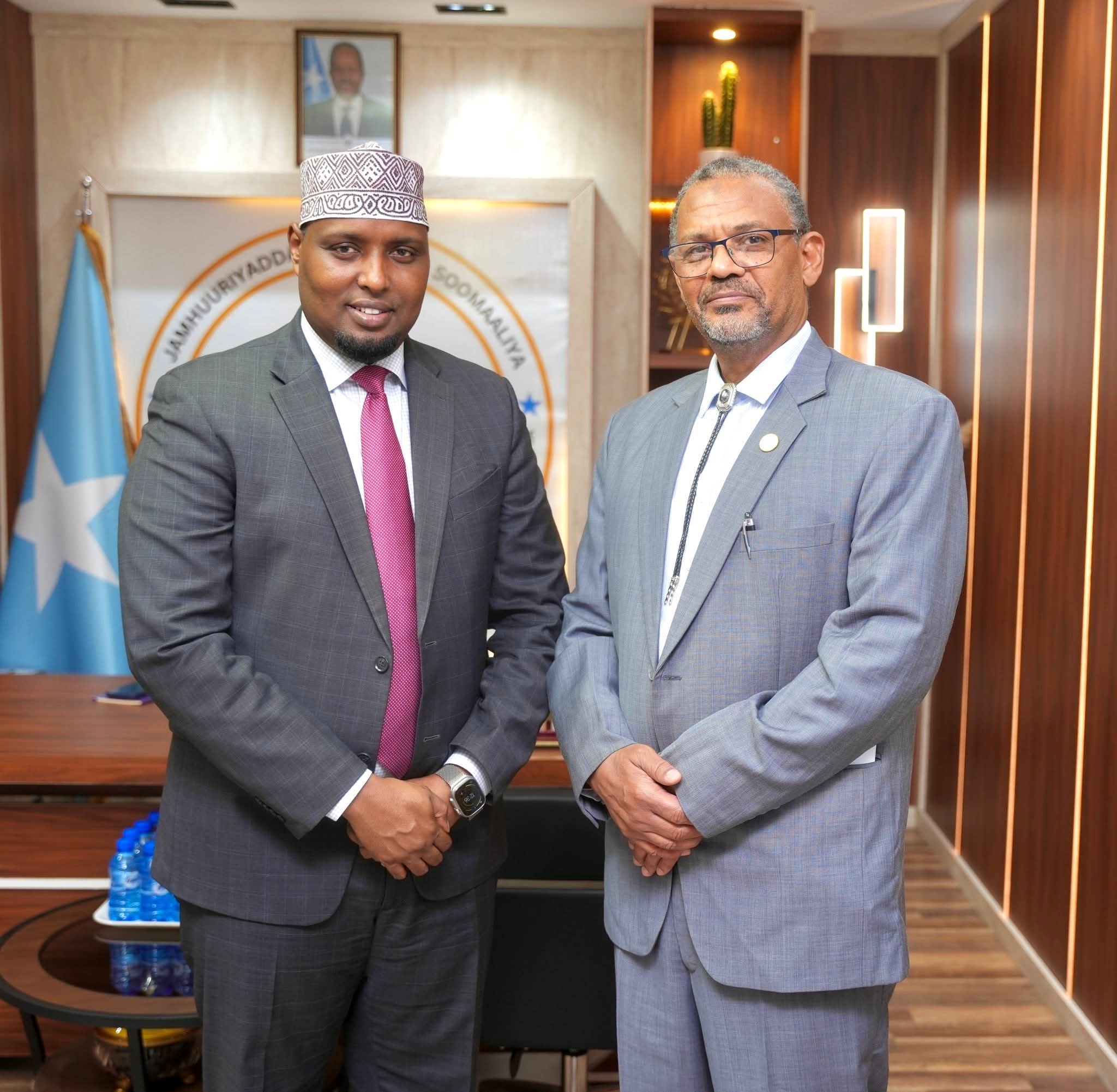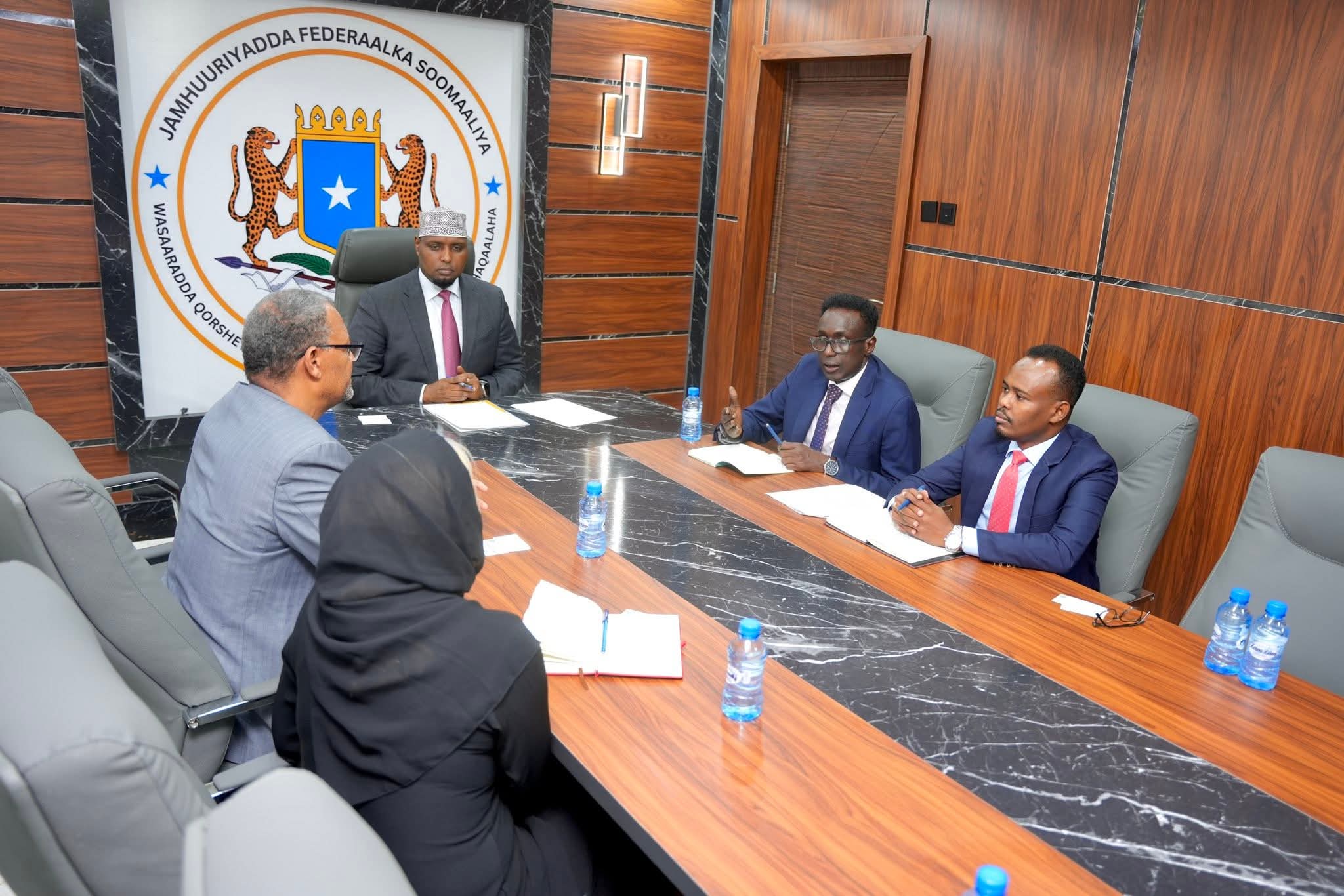 Wasiirka Qorsheynta, Maalgashiga iyo Horumarinta Dhaqaalaha, Mudane Maxamuud Cabdiraxmaan Sheekh Faarax (Beenebeene), oo uu wehliyo Agaasimaha Guud ee Wasaaradda, Mudane Maxamed Shire, ayaa maanta kulan mirodhal ah la yeeshay Wakiilka Hay’adda WFP ee Soomaaliya, Mudane Hameed Nuru.