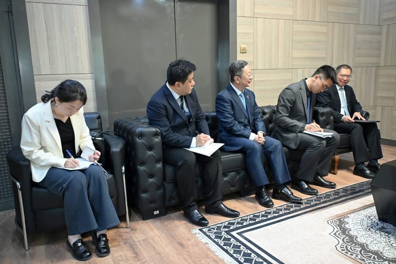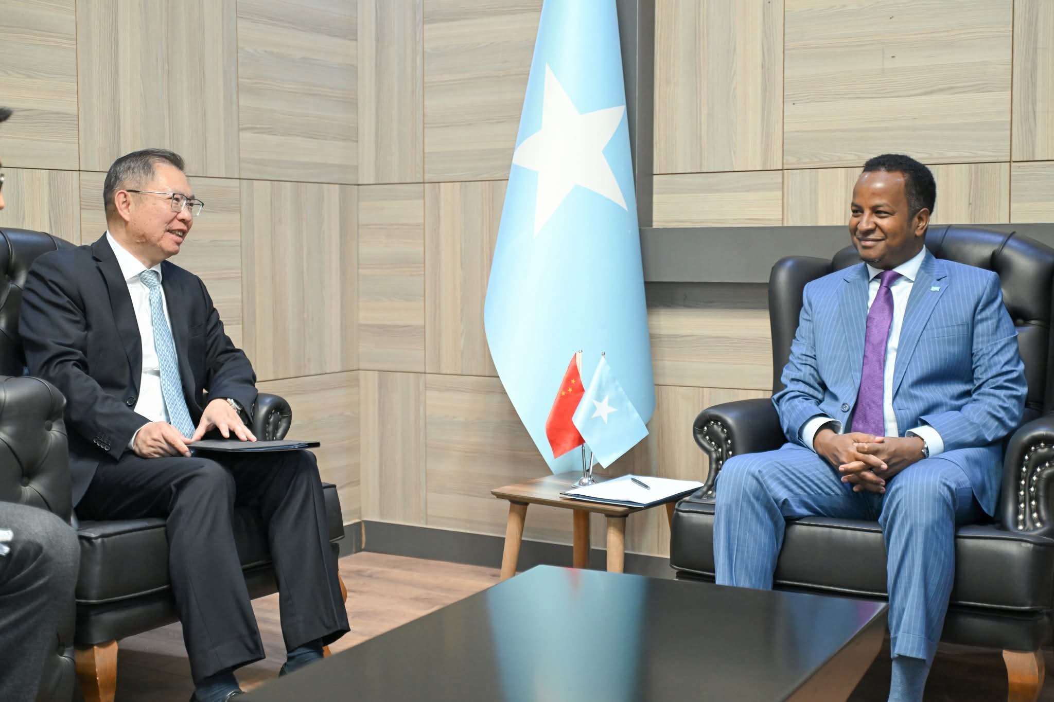 Wasiirka Wasaaradda Arrimaha Dibadda iyo Iskaashiga Caalamiga ah ee Jamhuuriyadda Federaalka Soomaaliya Mudane Cabdisalaan Cali ayaa kulan kula yeeshay xarunta Wasaaradda, Ergayga Gaarka ah ee Shiinaha u qaabilsan Geeska Afrika, Mudane Hu Changchun.