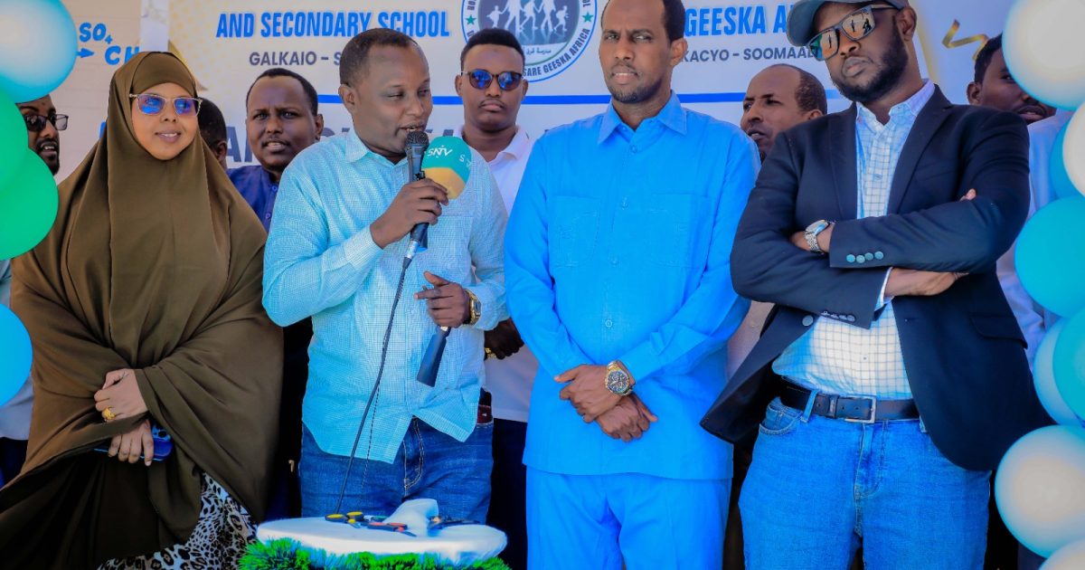 Guddoomiyaha Gudiga waalidiinta iskuulka Geeska Afrika Bashiir Cabdulaahi Xaashi Canshuur ayaa ugu horeyn ka warbixiyay baahida keentay in ay iska kaashadaan dhismaha iskuulkaan iyagoon hay’addo iyo maamul midna aan ka helin wax garab istaaga ayna ku guuleeysteen dhameystirka qeybtiisii koowaad
