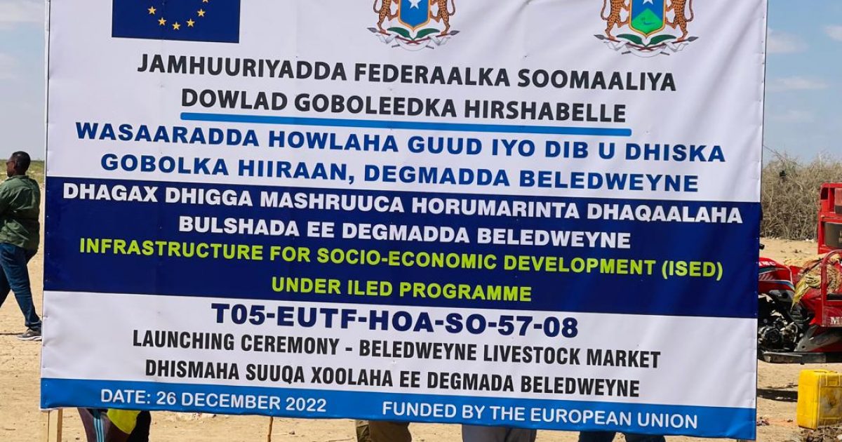 Wasiirka howlaha guud iyo dib-u-dhiska Dowlad Goboleedka Hirshabeelle Jaamac Xuseen Xaanshi iyo Wasiirka Xanaanada Xoolaha Hirshabeelle Maxamed Maxamuud Goodir oo ay wehliyaan mayarka Baladweyne iyo Gudoomiyaha Degmada Baladweyne,ayaa si wada jir ah u dhagax dhigay suuqa xoolaha xaafadda howlwadaag ee Magaalada Baladweyne.