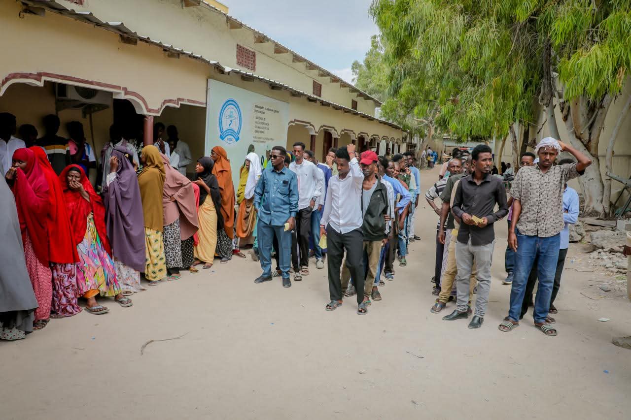 Wafdi Wasiirro ah oo kala ah Wasiirka Ganacsiga iyo Warshadaha Mudane Maxamuud Axmed (Geesood), Wasiirka Wasaaradda Dhallinyarada iyo Ciyaaraha, Mudane Maxamed Cabdulqaadir Cali, Wasiir Ku-xigeenka Wasaaradda Warfaafinta, Dhaqanka iyo Dalxiiska XFS, Mudane Cabdiraxmaan Yuusuf Al-Cadaala, Wasiir Ku-Xigeenka Wasaaradda Howlaha Guud ee XFS, Mudane Maxamed Xuseen (Gaaraxo) iyo Guddoomiye Ku-xigeenka Amniga iyo Siyaasadda ee Maamulka Gobolka Banaadir Mudane Maxamed Axmed Diiriye (Yabooh) ayaa maanta kormeer ku tegay xarunta degmada Howlwadaag oo ay ka socoto qaadashada kaarka codbixiyaasha doorashooyinka dalka, halkaas oo shacab badan oo horay isku diiwaan-geliyey ay ka qaadanayeen kaararkooda cod-bixinta.