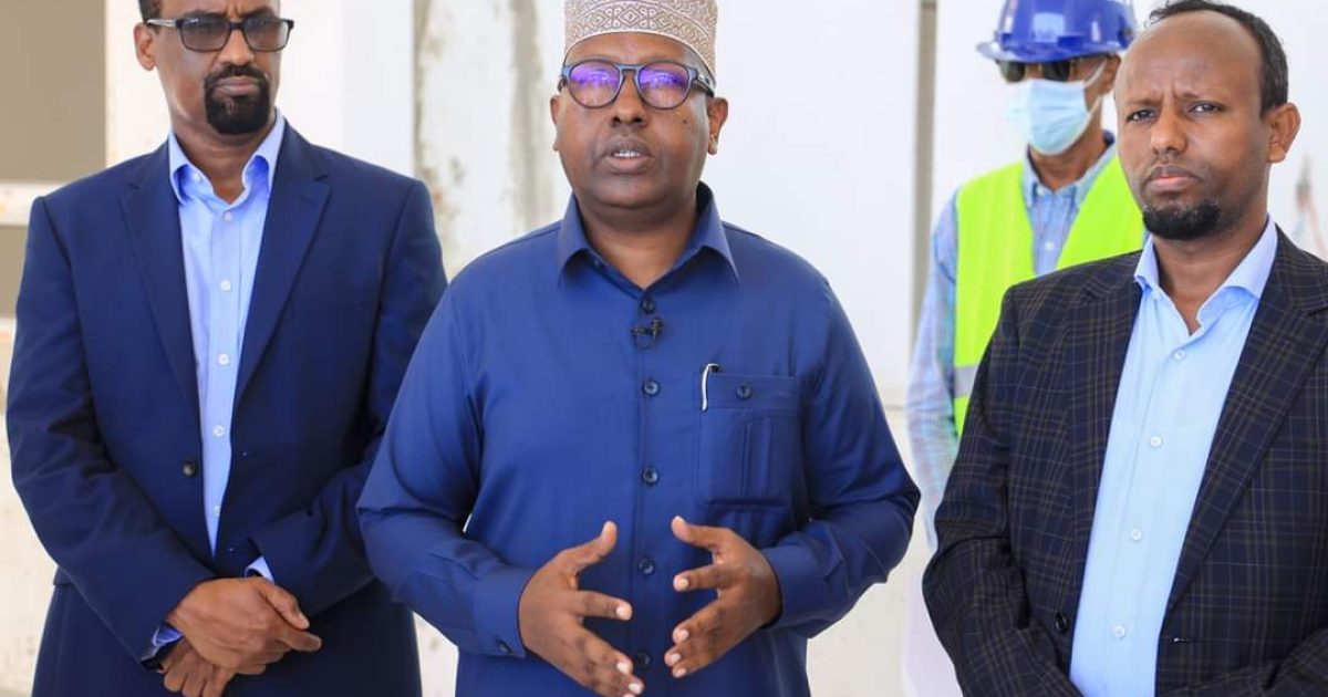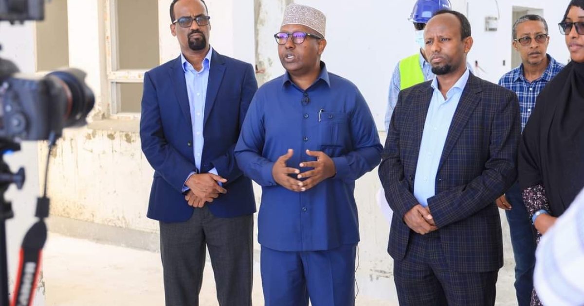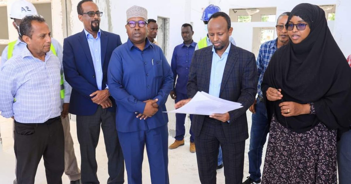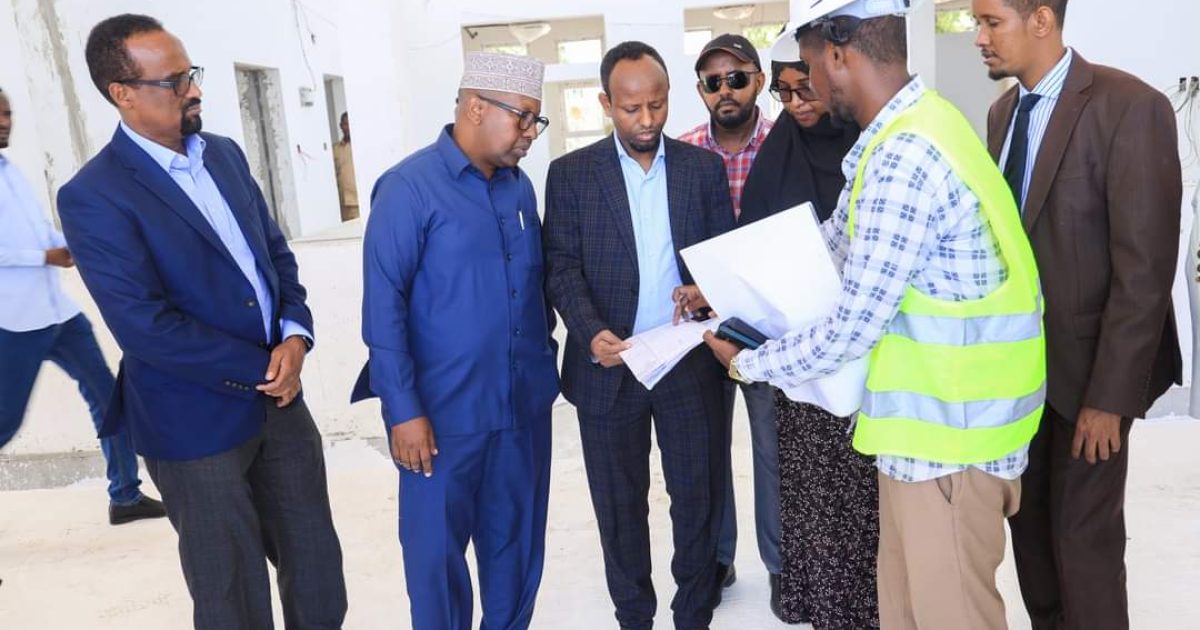 Wasiirka Wasaaradda Arrimaha Guddaha Federaalka iyo dib-u-heshiisiinta Mudane Axmed Macalim Fiqi iyo Wasiirka Caafimaadka Dr. Cali Xaaji Aadan, ayaa maanta waxaa ay kormeereen xarunta bangiga dhiigga oo uu dhismo ku socdo.