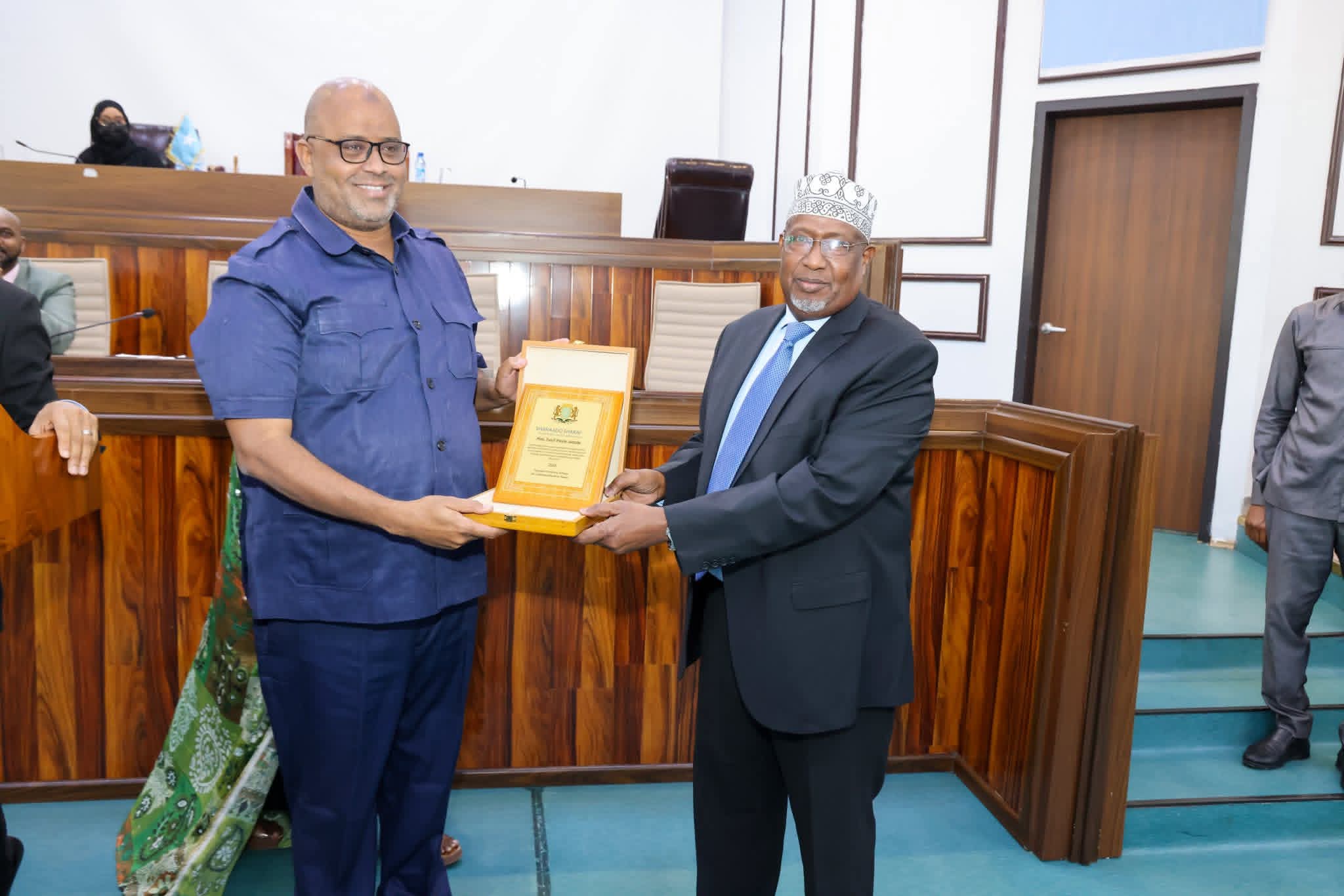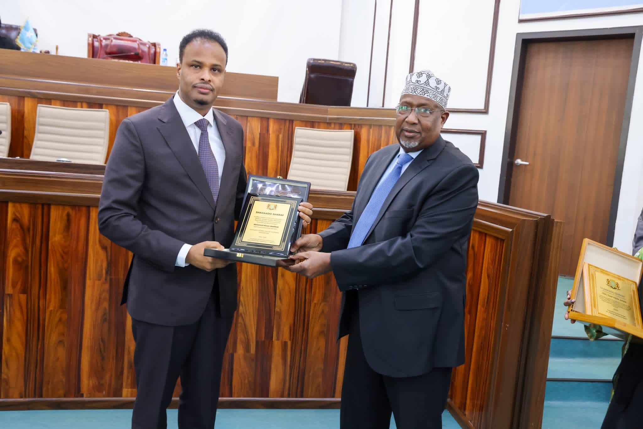 Intaasi kadib, Guddoomiyaha Golaha Shacabka ee Baarlamaanka Jamhuuriyadda Federaalka Soomaaliya Mudane Sheekh Aadan Maxamed Nuur (Madoobe) ayaa shahaado sharaf guddoonsiiyey Xildhibaan Maxamed Haaruun Cabdullaahi oo ku muteystay soo xaadiritaanka kulamada golaha iyo shaqada uu ka qabtay guddiga uu ka tirsanyahay iyo sidoo kale Xildhibaan Yuusuf Xeyle Jimcaale oo ku muteystay wax qabadkiisa ku aadan arrimaha bulshada.
