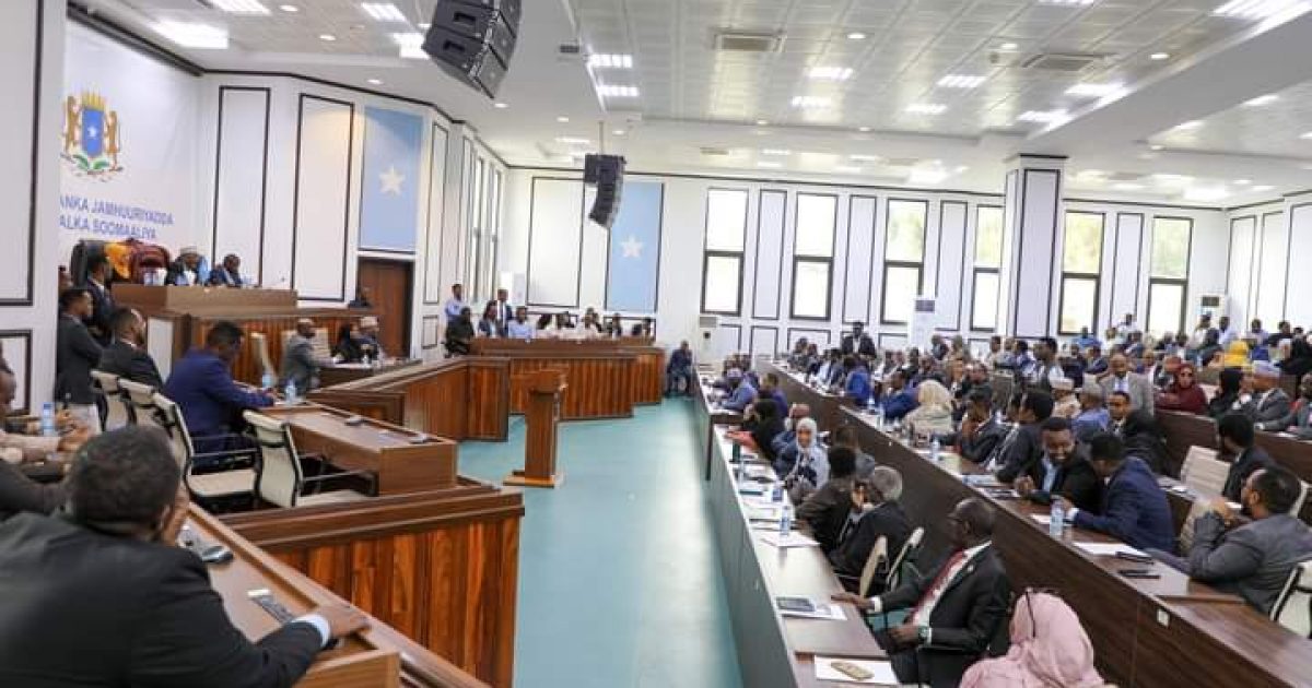 Guddoomiyaha Golaha Shacabka Baarlamaanka Jamhuuriyadda Federaalka Soomaaliya Mudane Sheekh Aadan Maxamed Nuur (Madoobe) ayaa shir guddoomiyay kalfadhiga seddaxaad kulankiisa 4-aad ee Golaha Shacabka oo ajandihiisu ahaa akhrinta koowaad ee Hindisa Sharciyeedka Sharciga Hay’adda Xisaabiyayaasha Soomaaliyeed.