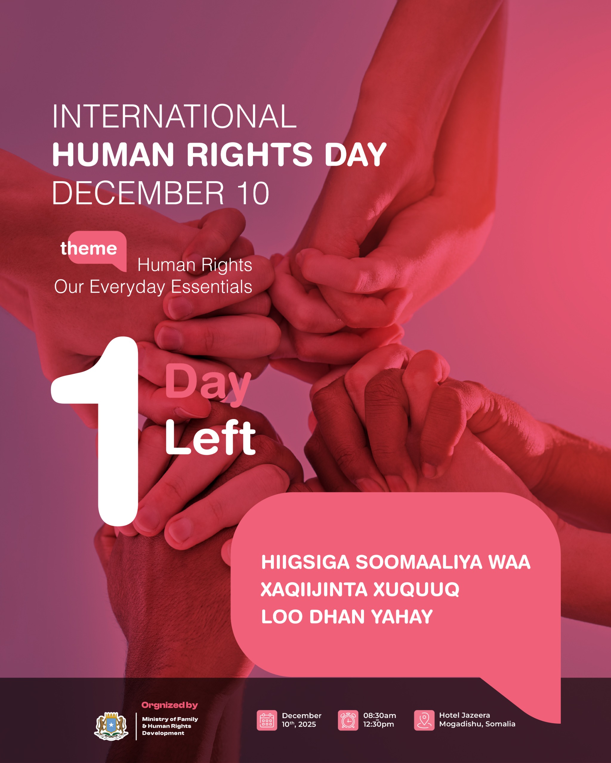 Maalintan waxa ay xasuusin tahay muhiimadda ay leedahay in la dhowro xuquuqda qof kasta oo bini’aadam ah, iyadoo Soomaaliya ay weli wajahaysa caqabado dhinaca xuquuqda aadanaha ah, haddana waxaa jira dadaallo socda oo lagu horumarinayo nidaamka cadaaladda iyo xorriyadaha muwaadiniinta.